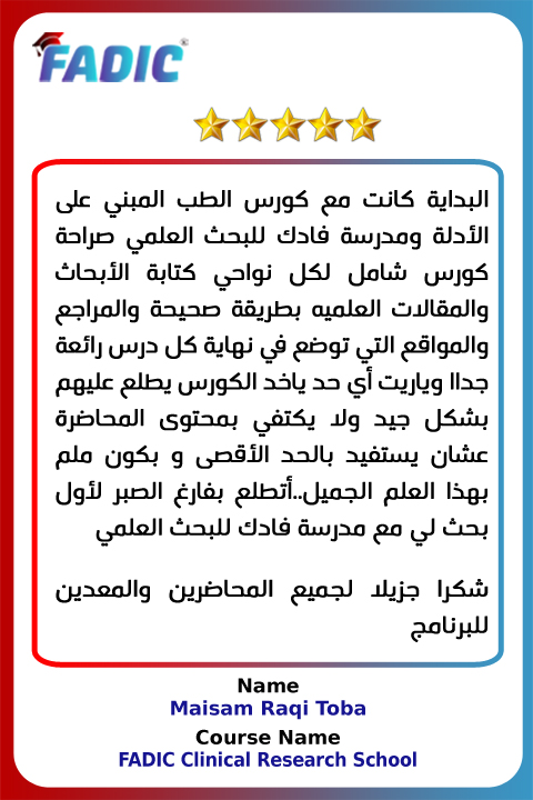 FADIC Research School is Targeting >> physician, pharmacist, dentist, nurse, and all other healthcare professionals. In addition to pharmacy and medical students.