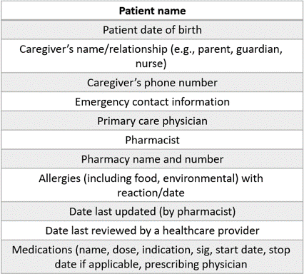 The main Components of a Personal Medication Record.